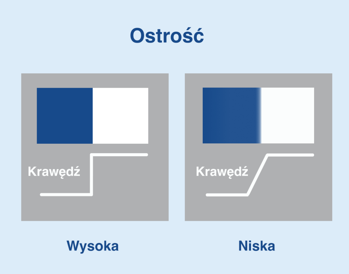 - jeśli natomiast „skok" zajmuje 5 lub więcej pikseli, czyli ma łagodniejszą gradację, to Twoje oko może zinterpretować obraz jako rozmyty.
