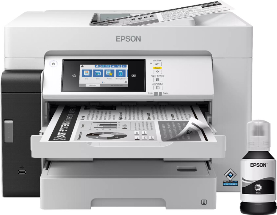 Nie idź na kompromis w kwestii kosztów druku. Z drukarką Epson EcoTank M15180 możesz zaoszczędzić, ponieważ butelka z atramentem oferuje wyjątkowo dużą wydajność – 7500 stron w czerni.