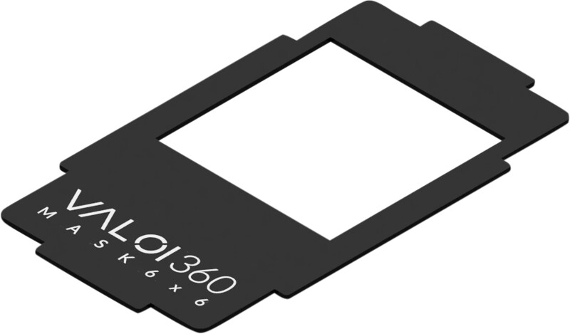 Maska filmowa dla średniego formatu (6x6) współpracująca z VALOI 360 Advencer. Maski redukują dodatkowe światło podczas skanowania formatów mniejszych niż 6x9 w uchwycie 120. Rezultatem jest lepszy kontrast — szczególnie korzystny w przypadku starszych obiektywów.