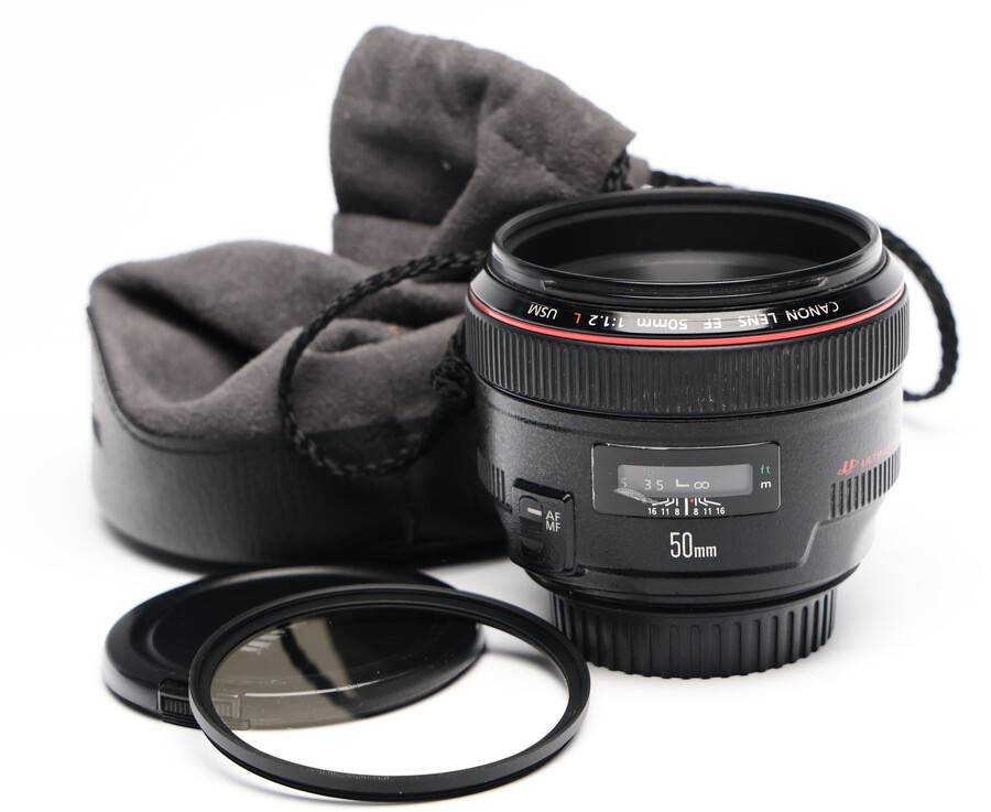 Dzięki przysłonie f/1.2 doskonale nadaje się do fotografowania przy słabym świetle - typowym dla fotoreporterów czy fotografujących śluby, którzy nie chcą burzyć nastroju sceny światłem błyskowym. Pierścieniowy silnik USM zatrzymuje obiektyw z precyzją i dokładnością w chwili ustawienia ostrości, obiektyw posiada również stałą możliwość ręcznej korekcji ustawienia. W konstrukcji obiektywu zastosowano dużą soczewkę asferyczną, która przeciwdziała zmiękczeniu obrazu spowodowanemu przez aberrację sferyczną i zapewnia doskonałą ostrość i kontrast obrazu w całym zakresie odległości i przysłon. Powłoki przeciwodblaskowe Super Spectra zapobiegają powstawaniu odbić światła i poświaty.