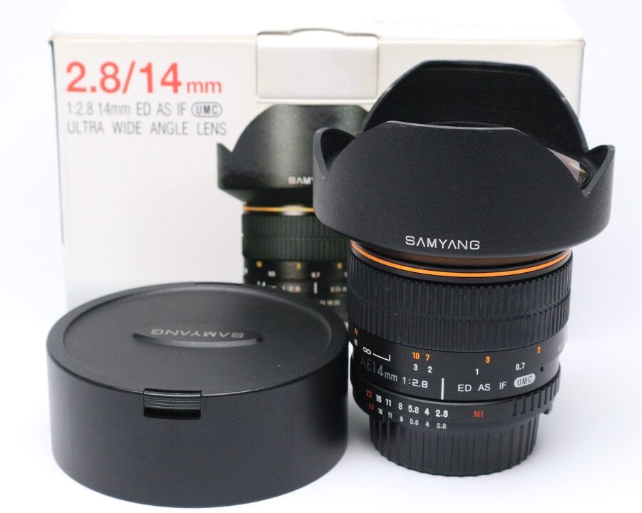 Ultraszerokokątny, stałoogniskowy obiektyw Samyang 14mm f/2.8 ED AS IF UMC został zaprojektowany do współpracy z aparatami wyposażonymi w matryce pełnoklatkowe lub APS-C. W konstrukcji optycznej zastosowano 14 elementów w 10 grupach optycznych. Model został wyposażony w dwie soczewki typu ED, o niskim współczynniku dyspersji, dwie asferyczne, w tym jedną hybrydową oraz trzy ze szkła o wysokim współczynniku refrakcji. Wszystkie soczewki zostały pokryte najwyższej jakości powłokami antyrefleksyjnymi UMC. Szkło daje maksymalny kąt widzenia równy 115,7 stopnia, a minimalna odległość ostrzenia wynosi 0,28 metra.